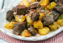 Et yemeklerinizin en iyi yancılarından biri olacak bir tarif o! İngilizcesi ”Potato Kugel” olarak geçen, içinde krema, süt olmadan kek…